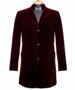 Made from high-quality velvet material, the coat features a rich red color that instantly captures attention and reflects the Doctor’s distinctive personality. The smooth texture of the velvet adds a luxurious feel, making it suitable for cosplay events, themed parties, or stylish everyday wear. The lapel style collar enhances the coat’s sharp and refined appearance, giving it a structured and polished silhouette.