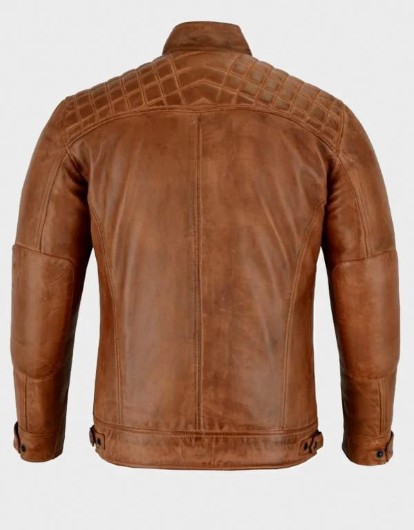 Brown Leather Cafe Racer Jacket